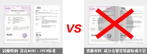 順為特鋼成份達(dá)標(biāo),符合ROHS、SVCH等相關(guān)標(biāo)準(zhǔn)。順為承諾:材質(zhì)化驗成分不足或假貨,假一賠十。